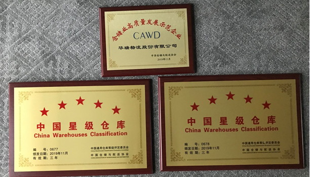 华瑞物流股份有限公司首次获得“中国仓储业高质量发展示范企业”荣誉;杭州临港物流有限公司、平湖华瑞仓储有限公司再次获得“中国星级仓库”荣誉。